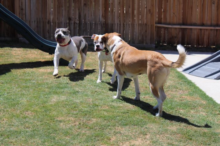 I am currently being fostered in central ca maverick is a 7 eight year old american staffordshire terrier mixture basset hound maybe.