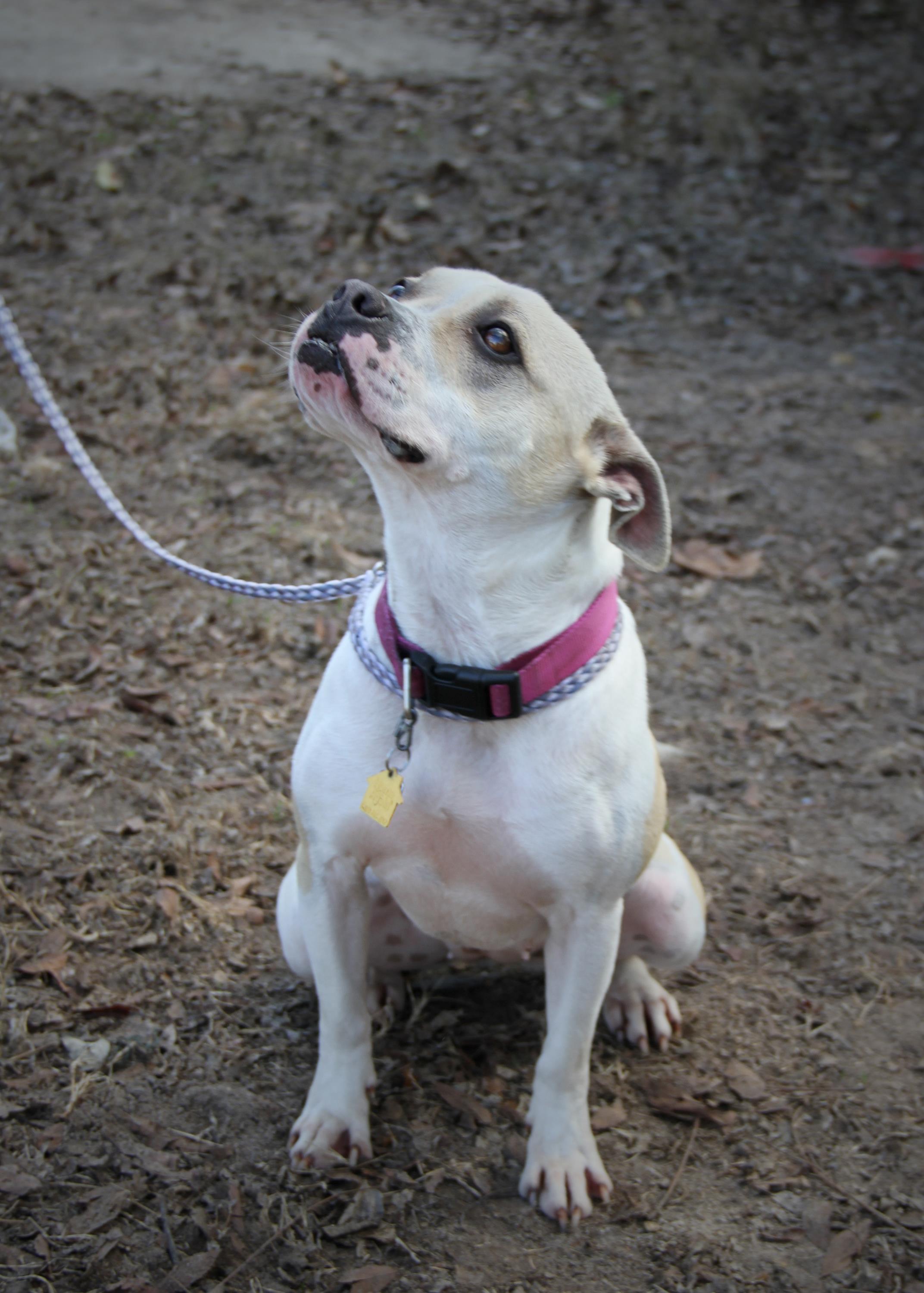 Poppy is an american bully terrier mix about 4 years old and weighs approx 50 lbs.