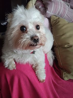 We feel he is a mix between a bichon maltese and poodle. A maltichon will be bigger than the largest maltese but smaller than the largest bichon frise about 8 to 13 pounds. He gets along great with his foster siblings but it is unknown how he would be with cats. Their fluffy coats are curly and soft and tend to stand off the body when they are properly groomed.