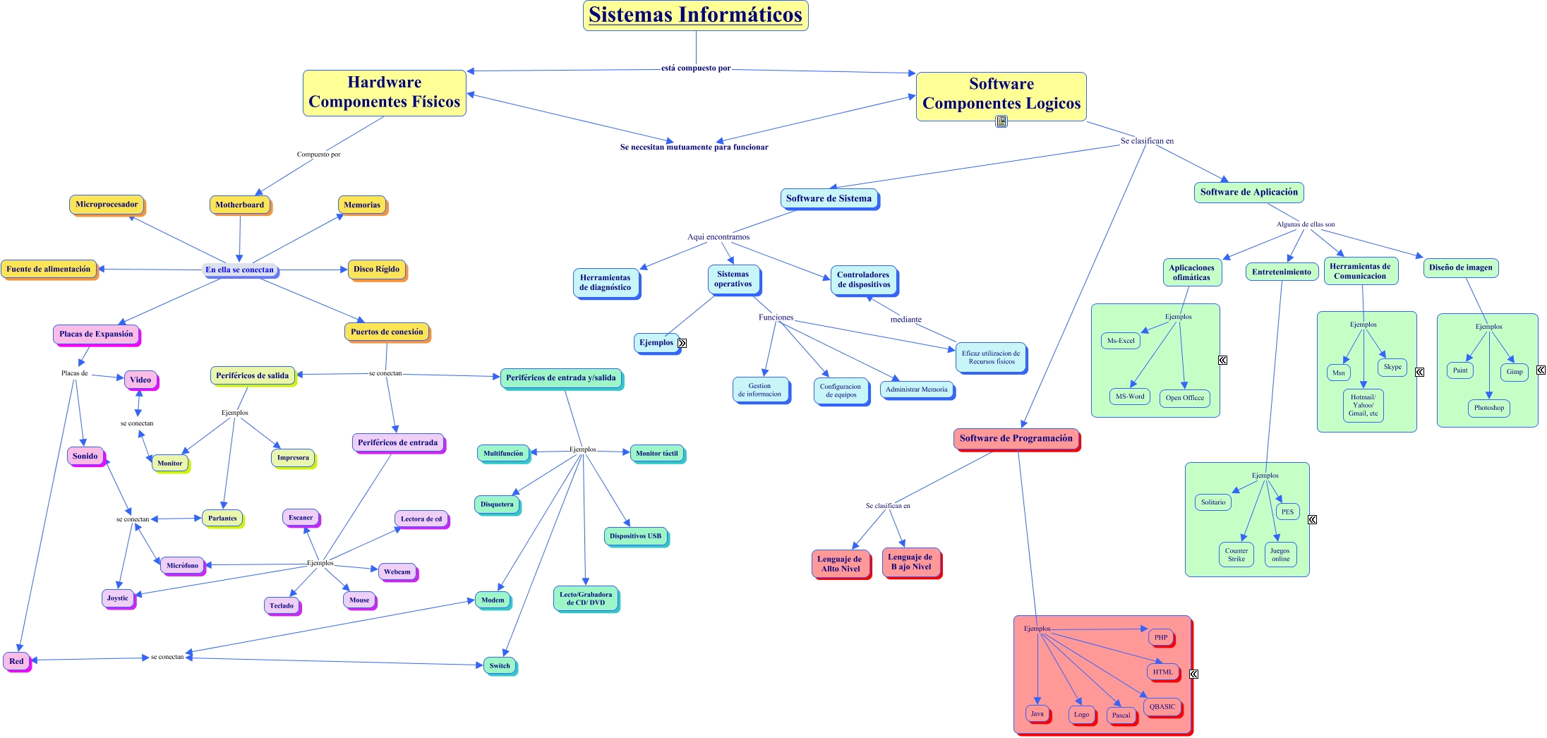 El hardware es el conjunto de las partes físicas que integran el cuerpo de un sistema computarizado. Estas partes son siempre elementos eléctricos electrónicos. Por otro lado el software tiene como función el proporcionar las herramientas que generan la optimización de recursos de la máquina además funge como. El caso más avanzado es el de los ide que aúnan este cometido con el de los depuradores.