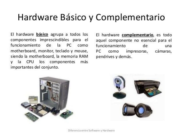 Los componentes y dispositivos del hardware se dividen en hardware básico y hardware complementario.