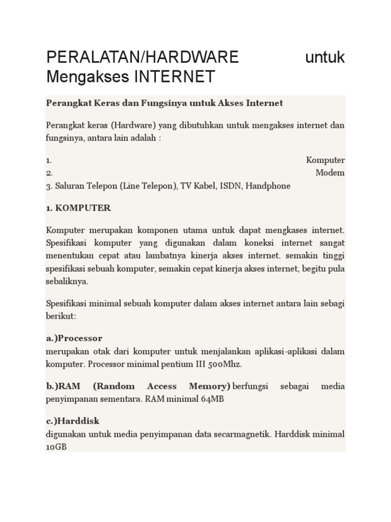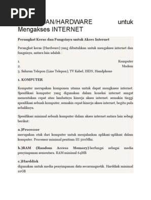 Perangkat lunak software untuk mengakses internet perangkat lunak software untuk mengakses internet dibagi menjadi dua yaitu softwrae sistem operasi dan software aplikasi. Komputer komputer merupakan komponen utama untuk dapat mengkases internet sudah tau khan. Contoh hardware dari perangkat tambahan adalah hardware yang berguna untuk menyambungkan jaringan internet. Selain tiga jenis hardware yang tadi disebut masih ada perangkat lain yang penting didalam komputer.