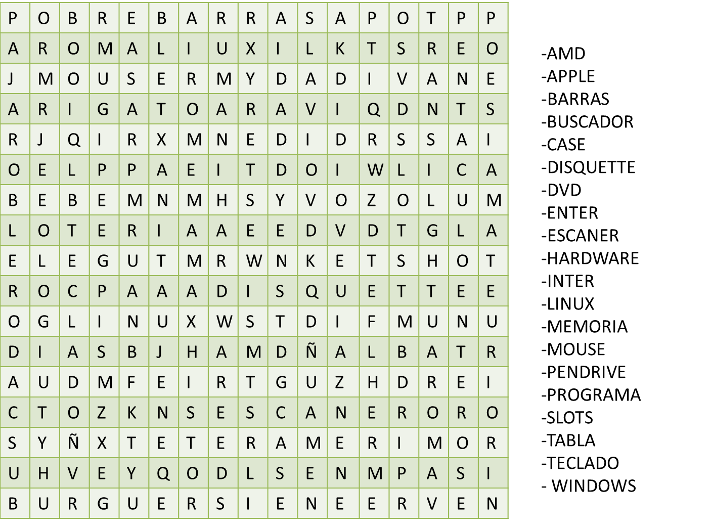 Imagenes de sopa de letras de computacion. Ver más ideas sobre computacion actividades de matematicas clases de computacion. Para utilizarlas haz clic en una de ellas después clic nuevamente pero con el botón derecho del mouse y luego en guardar imagen como o copiar imagen. Encuentra imágenes de sopa de letras. Sin coste para uso comercial sin necesidad de mencionar la fuente libre de derechos de autor.