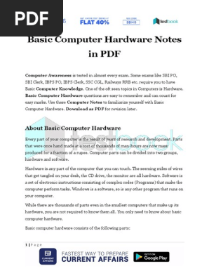 Use these computer notes to familiarize yourself with basic computer hardware. Basic computer hardware questions are easy to remember and can count for easy marks. Download as pdf for revision later. Computer hardware includes all the electrical mechanical and the electronic parts of a computer.