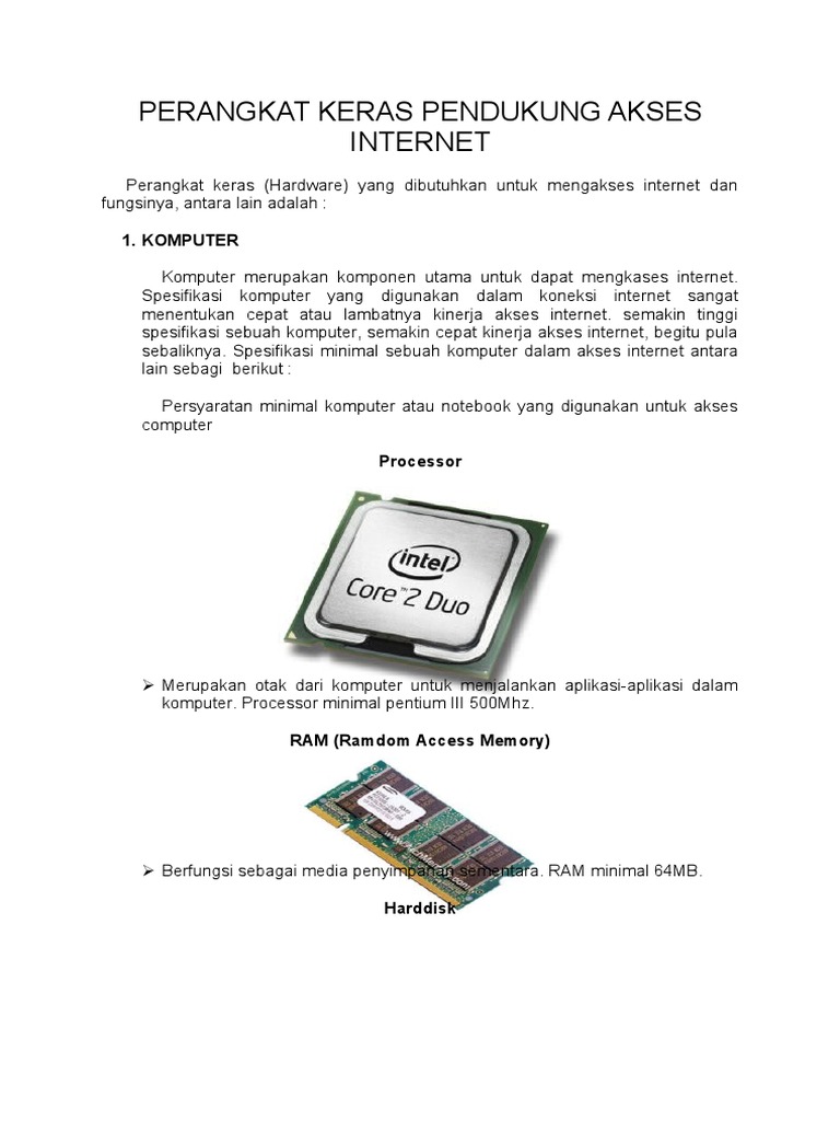 Perangkat keras pendukung internet. Pengertian tersebut berasal dari kepanjangan pc2. Komputer komputer merupakan komponen utama untuk dapat mengkases internet. Spesifikasi komputer yang digunakan dalam koneksi internet sangat menentukan cepat atau lambatnya kinerja akses internet. Pengertian pc sendiri adalah komputer pribadi.