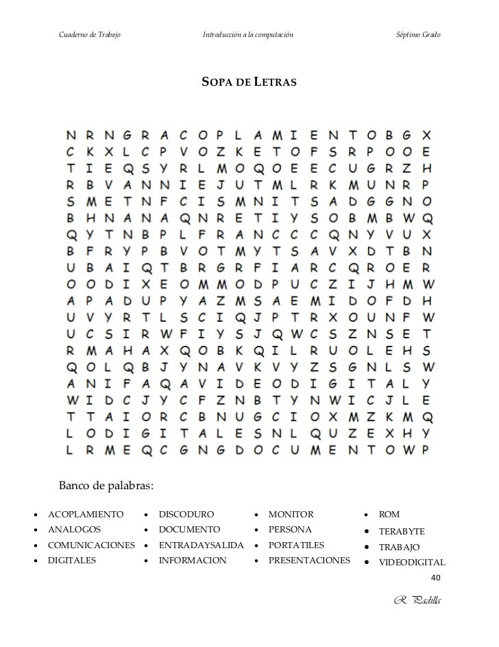 Almacenamiento en nube 5. 20 mentiras de verdad escrito 1º. Puedes elegir el tamaño de cuadrícula desde 6x6 hasta 30x30. Jugá en línea sopas de letras de computacion en español.