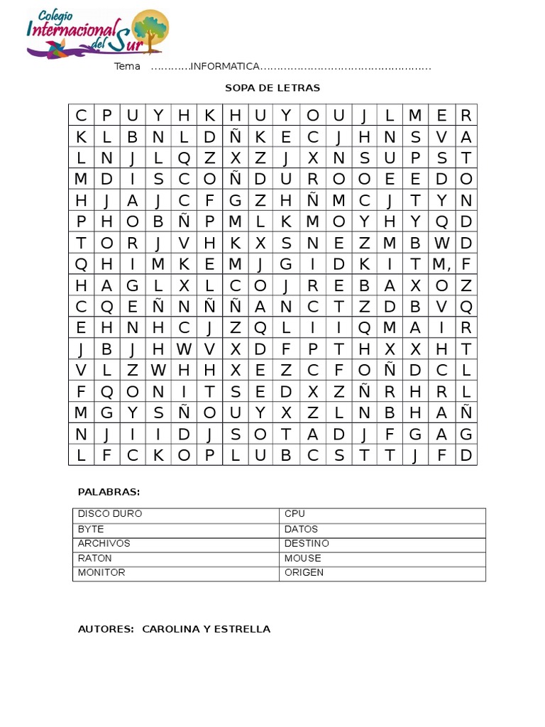 Un crucigrama y una sopa de letras con vocabulario de informática básico. Ver más ideas sobre sopa de letras para niños letras para niños sopa de letras. Estas sopas de letras están disponibles para que las uses en tu iglesia o en el hogar. 27 ago 2019 explora el tablero de eldonaldo21 sopa de letras para niños en pinterest.