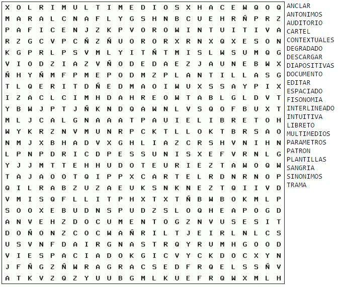 No es un juegos de preguntas pero tendrás que averiguar las soluciones a las preguntas de informatica para resolver el crucigrama actividades de informatica entra y aprende informatica con estas actividades de informatica online y gratis. Estas sopas de letras están disponibles para que las uses en tu iglesia o en el hogar. Informatica montevideo uruguay blog de informática creado por la docente flavia alsina para sus alumnos de 1º y 2º de ciclo básico de secundaria y compartir información y material con docentes. Para utilizarlas haz clic en una de ellas después clic nuevamente pero con el botón derecho del mouse y luego en guardar imagen como o copiar imagen.