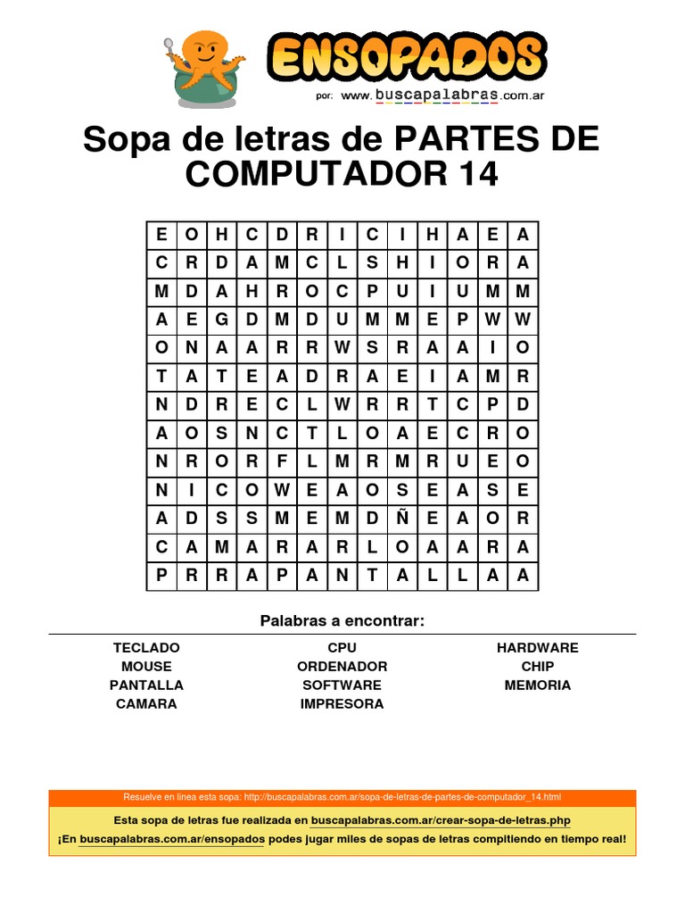 Sopa de letras de las partes del computador word search puzzle games identificar las partesd el computador this website uses cookies to ensure you get the best experience. Alumnos de tercero de preescolar esta es la clase de computación. Viendo las palabras a buscar. Puedes hacer los ejercicios online o descargar la ficha como pdf.