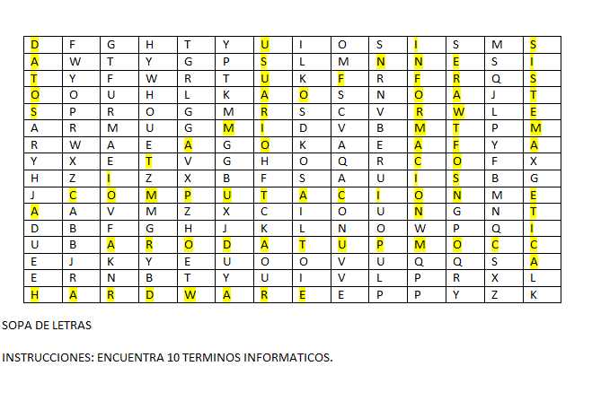 Sopa de letras para computacion. Jugá en línea sopas de letras en español contra un oponente o en solitario. Juegos para aprender computacion. No existe videojuego de última generación que supere a los entretenidos pasatiempos clásicos que nunca pasaran de moda. 16 04 2015 armas en la biblia exodo 28 palabras a.