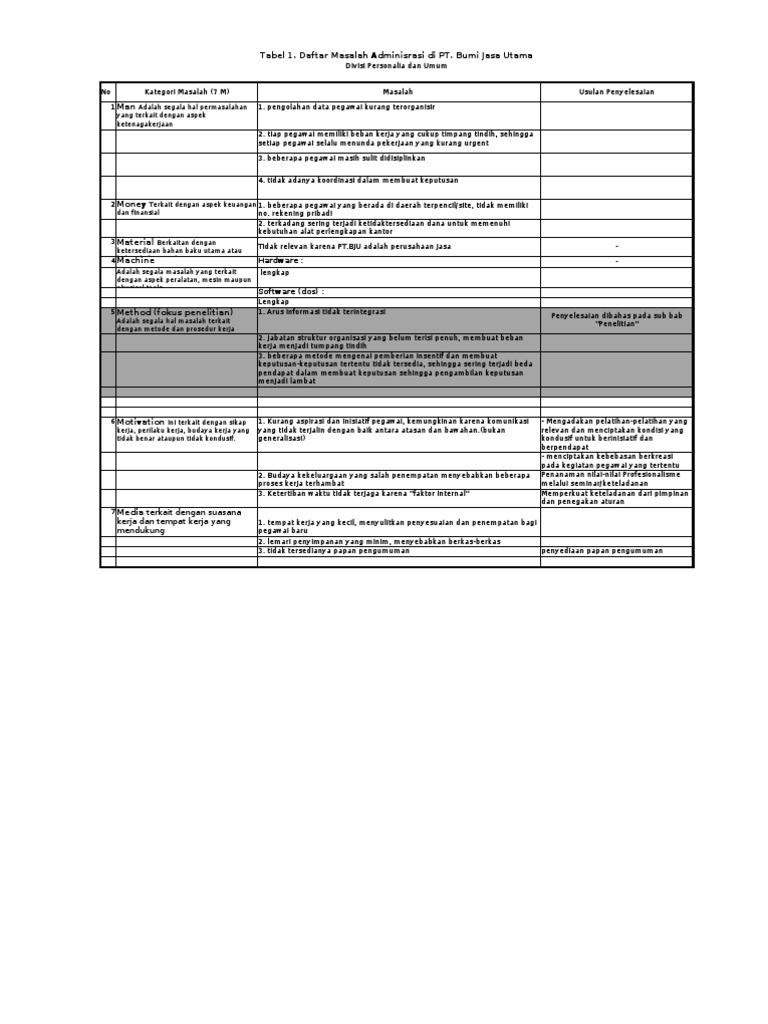 Tabel Permasalahan Hardware Internal
